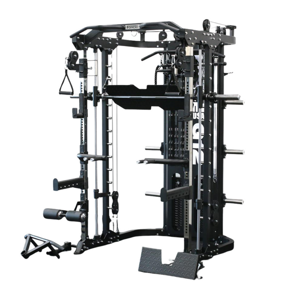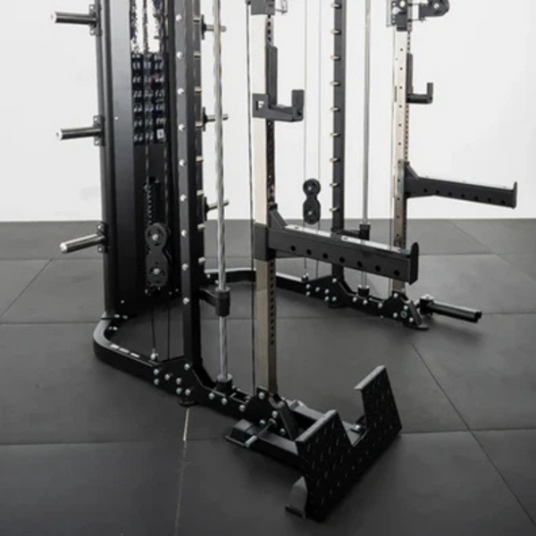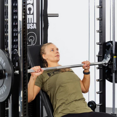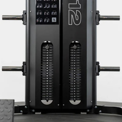 Con el respaldo de un riguroso I+D, Force USA ha lanzado una barra Smith sin peso (con contrapeso) con el movimiento más suave del mercado. Esto permite a los usuarios principiantes aprender el movimiento correcto de cualquier ejercicio antes de empezar a usar peso. La barra Smith de la G12™ también incluye un moleteado de última generación para una sensación inigualable durante sesiones de sentadillas y peso muerto, a la vez que se convierte fácilmente en una fantástica máquina de prensa de piernas.