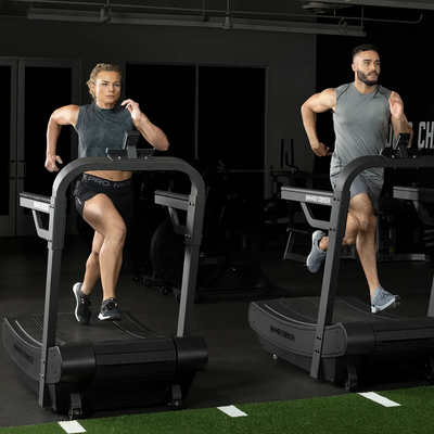 La cinta de correr autopropulsada le brinda un control total de la mecánica del movimiento y la velocidad de la cinta. En comparación con otras caminadoras, la banda de rodadura HD permite un mayor golpe de la parte media a delantera del pie para una aceleración rápida y un sprint a toda velocidad.
